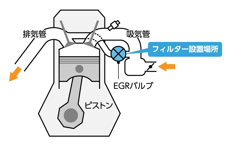 エンジンのEGR通路に“LF30”を装着し、